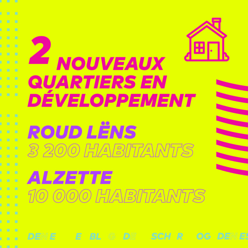 Ici, on construit ! Deux nouveaux quartiers résidentiels sont en cours de construction à Esch, le quartier Rout Lëns et le quartier Alzette. Au total, 13.200 personnes pourront y vivre.