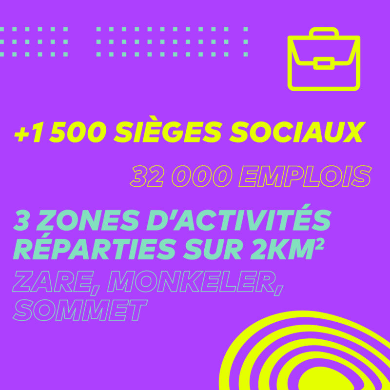 Ici, on travaille ! Plus de 1500 entreprises sont basées ici à Esch avec un total d’environ 32.000 emplois. Beaucoup d’entre elles sont situées dans l’une des 3 zones d’activité : Zare, Monkeler ou Sommet.