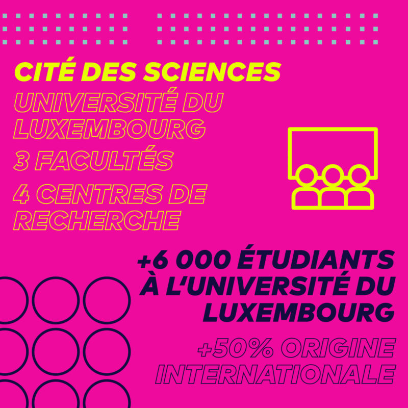 Le campus de Belval fait d’Esch la ville des sciences, avec 3 facultés, 4 centres de recherches et plus de 6.000 étudiants, dont 50% d’étudiants internationaux.