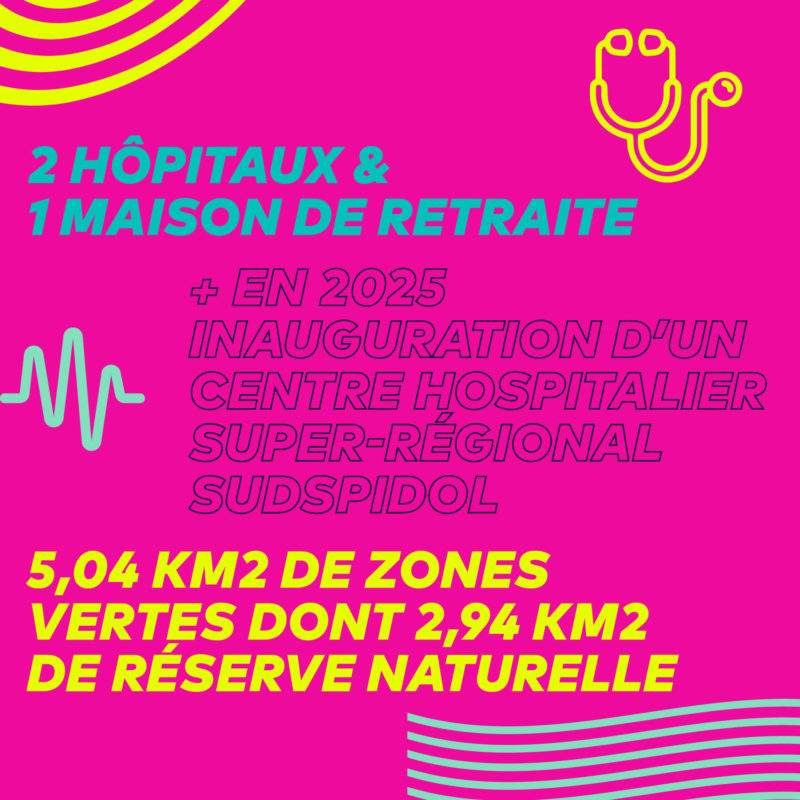 Hei geet et där gutt! Nieft den 2 Spideeler, engem Altersheim an dem grousse Südspidol deen no 2025 soll ageweit ginn, gëtt et zu Esch och vill Gréngs: iwwer 5 km2 Zones Vertes, dovunner 2,94 km2 Naturreservater.