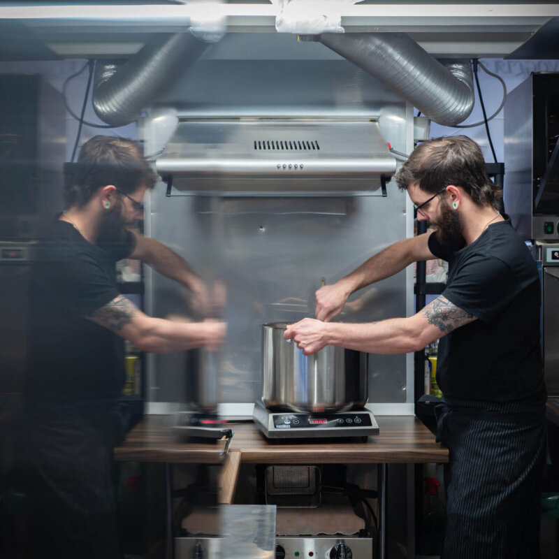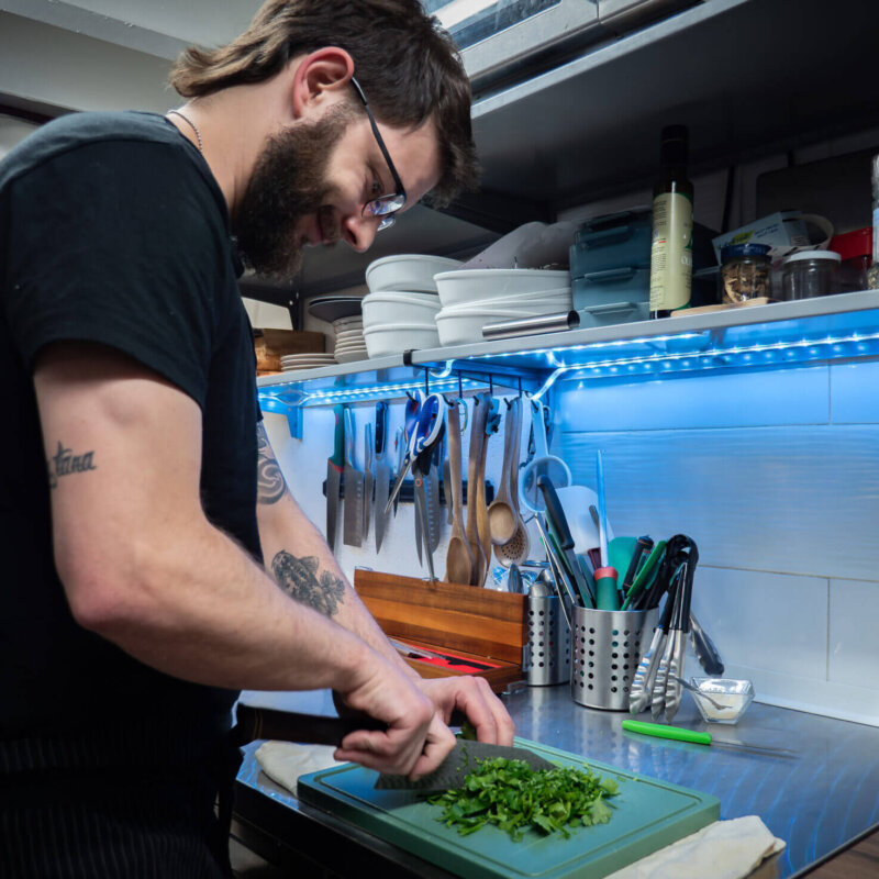 Et derrière les fourneaux ? C’est Alberto. « C’est un super cuistot, » dit Giorgia avec tendresse. « Il a étudié la cuisine en Italie, il a travaillé à Venise, en Allemagne… On peut dire que je suis d’abord tombée amoureuse de ses plats. Après, je suis tombée amoureuse de lui. »