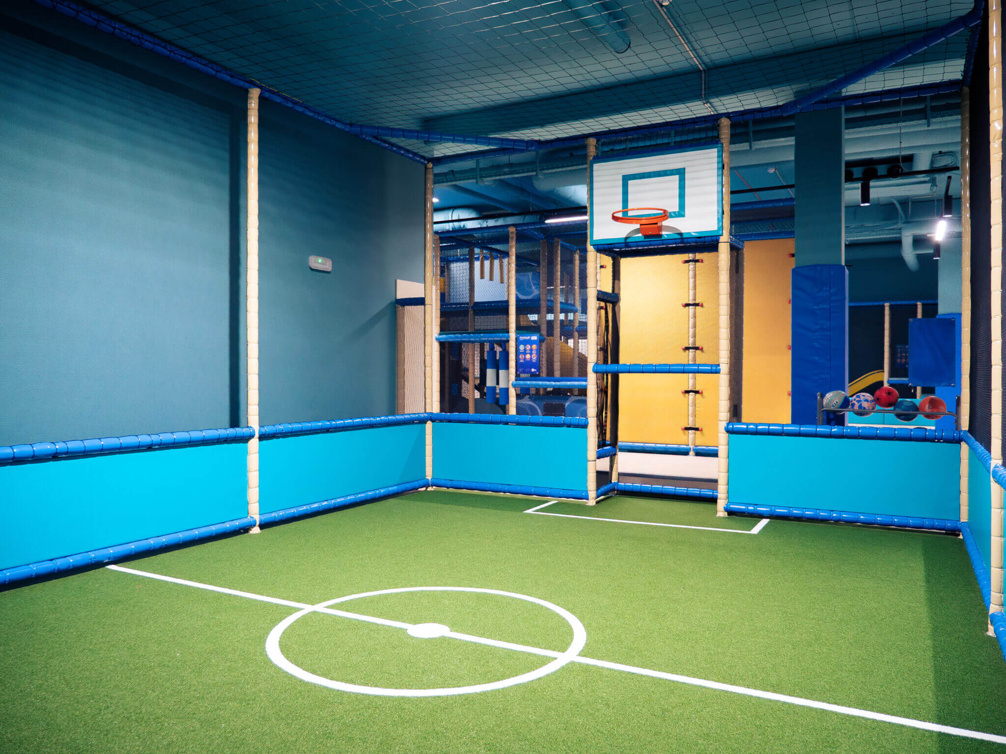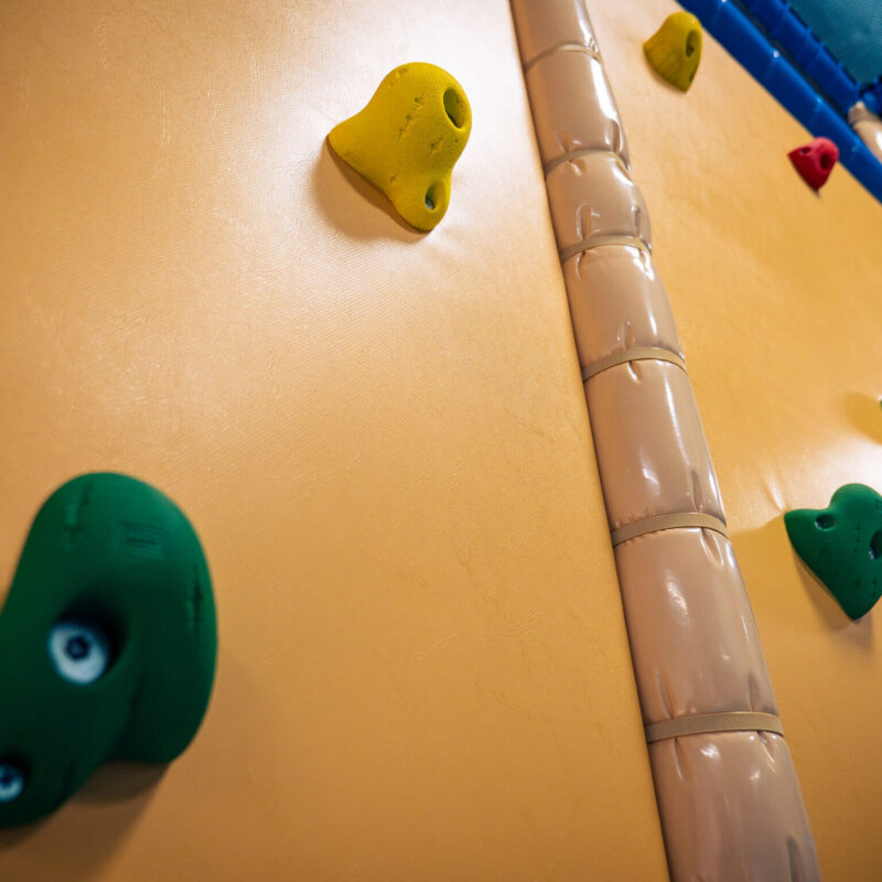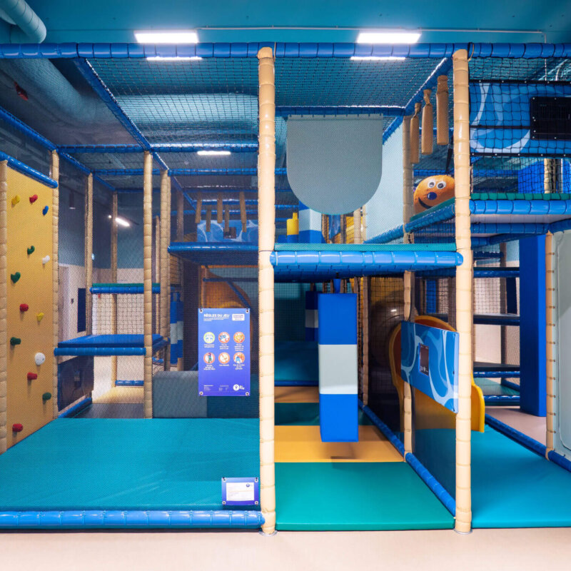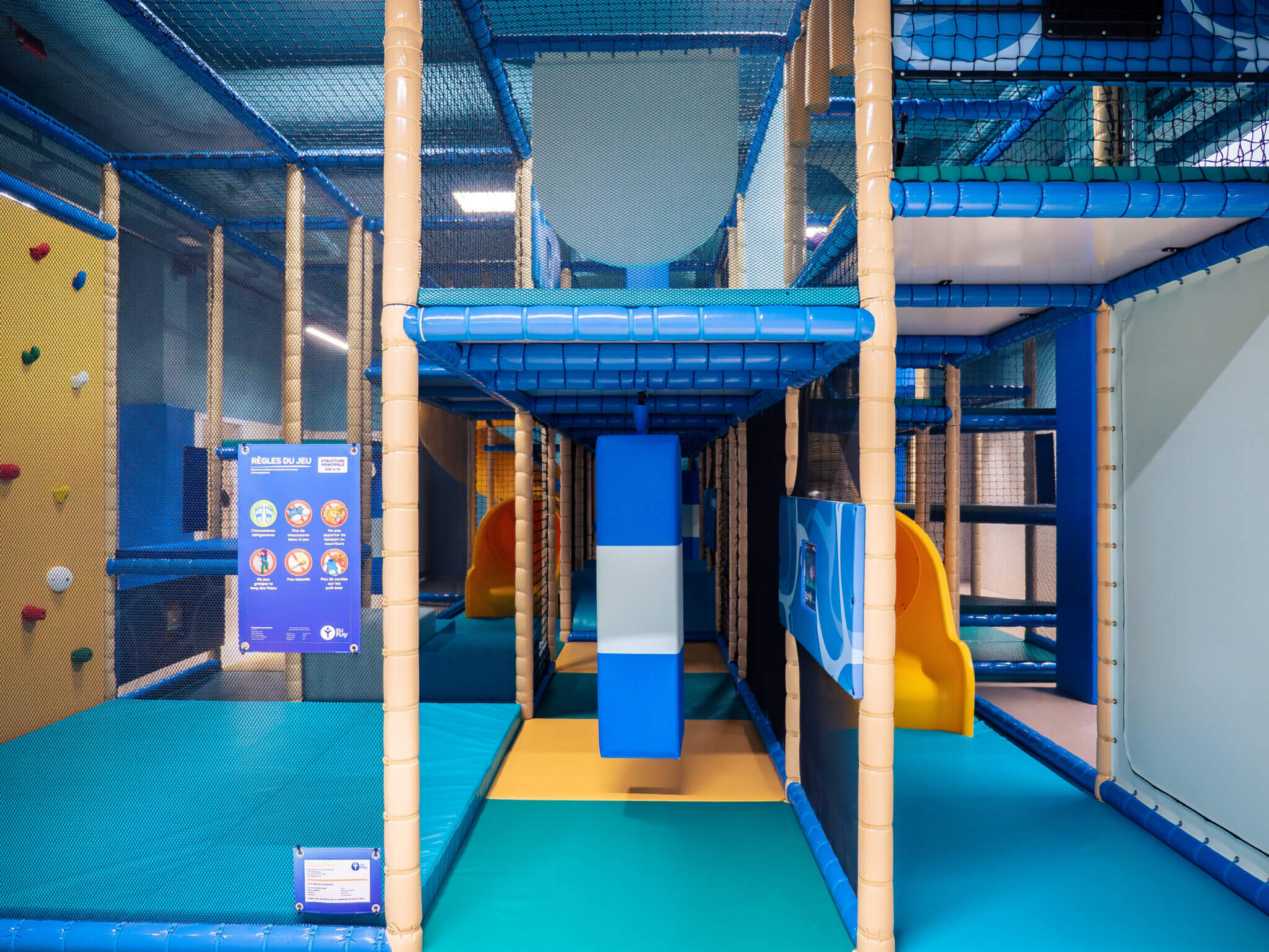 Mais ce calme n’empêche pas l’aventure : un parc d’escalade intérieur impressionnant occupe une partie de l’espace. Juste à côté, un terrain multisport permet d’organiser des jeux collectifs, football, basket… .