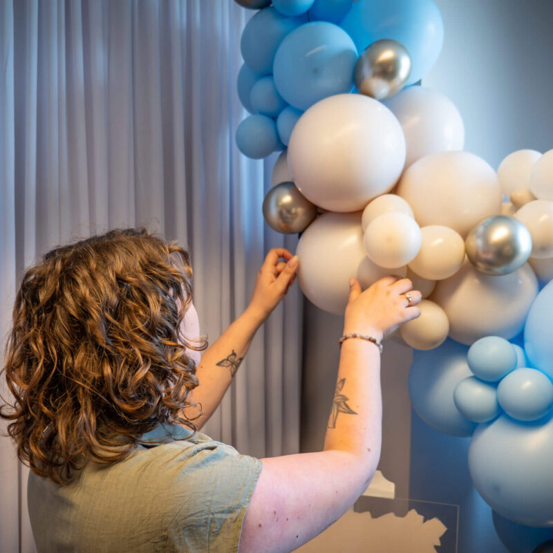 Elle puise son inspiration dans les tendances actuelles et les idées venues d’ailleurs. « Les baby showers et les gender reveals, c’est très demandé maintenant. » Parmi les prestations les plus populaires : des ballons à éclater avec la couleur rose ou bleue à l’intérieur, avec de la fumée colorée, ou encore des décors immersifs.
