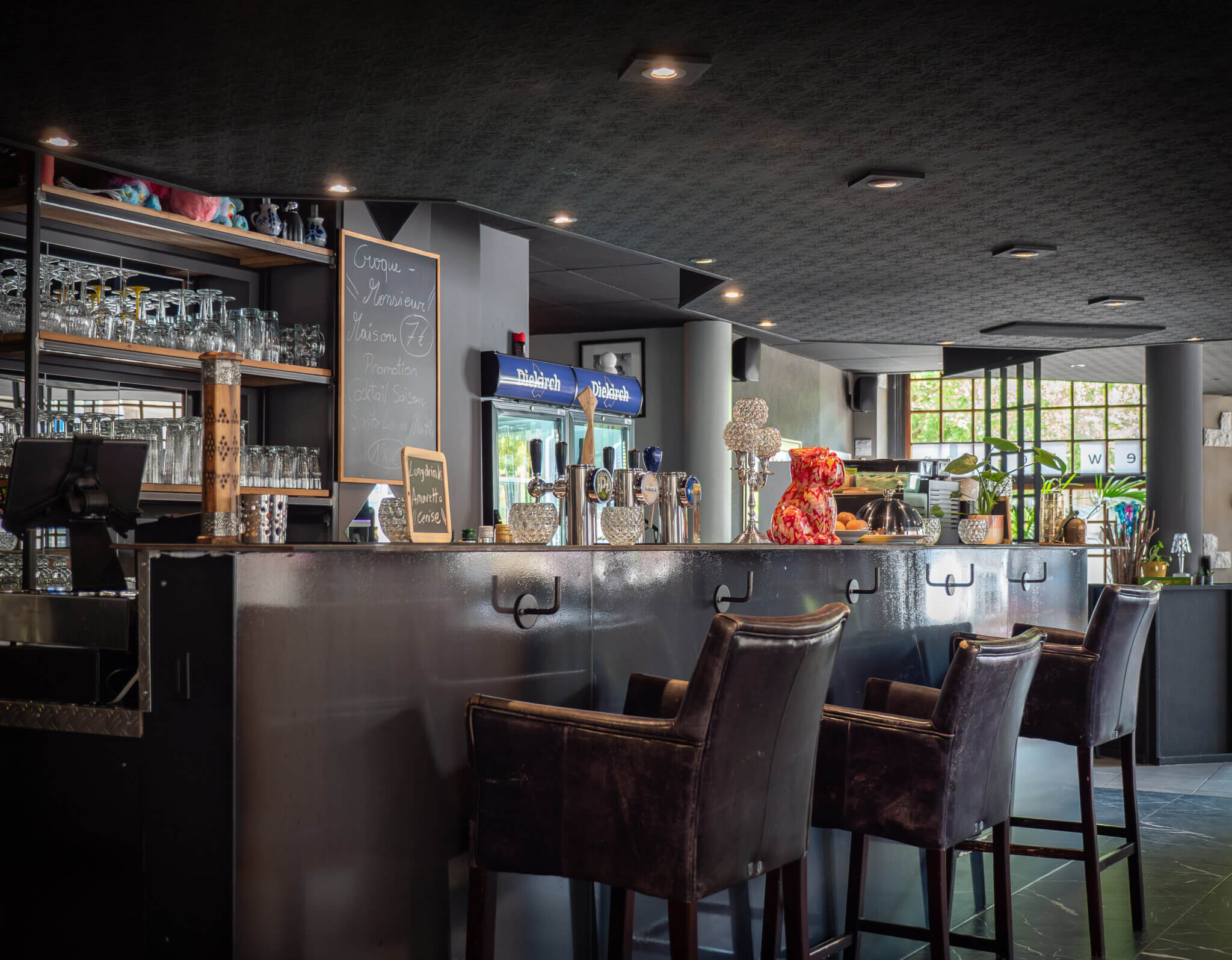 D’Dekoratioun ass gemittlech, mat ville Planzen an opfällegen Detailer. „Keen Industrie-Feeling – éischter wéi bei engem doheem.“