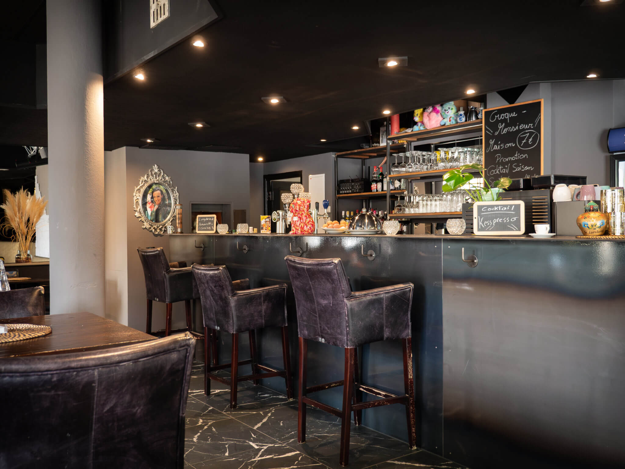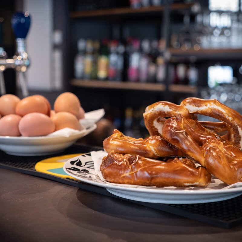 Wat d’Iessen ugeet, ass kloer: Hei gëtt et hausgemaachte Kiche – mat Leidenschaft gekacht. „Ech hu meng Léift fir d’Kiche virun e puer Joer entdeckt – mat Rezepter wéi meng Mamm oder meng Groussmamm se gekacht hunn. Kniddelen, Rouladen… oder e gudde Croque-Monsieur – dat schmaacht einfach jidderengem“, erzielt d’Sandra. „Ech hat eng Kéier eng Damm op der Terrass, déi zu hirem Meedche gesot huet: ,Esou e gudde Croque-Monsieur kriss de net all Dag.‘ Dat war Musek a mengen Oueren.“