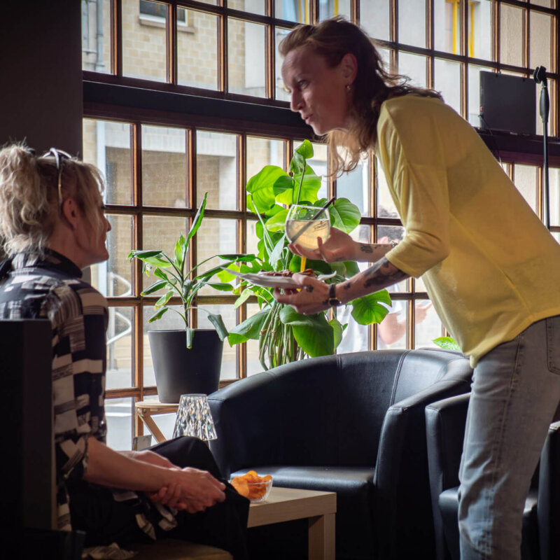 Weekends ginn Theemenowender organiséiert: vun der Drag Show bis zur Pyjama-Party, vum Bluesconcert bis zur 80er-Soirée… Et gëtt kee fixen Agenda, mee en oppent Ouer fir Iddien an eng Freed um Improviséieren. „Mir wëllen net nëmmen eng Kaffisstuff sinn, mee eng Plaz, wou d’Leit sech fräi fillen a Spaass hunn.“