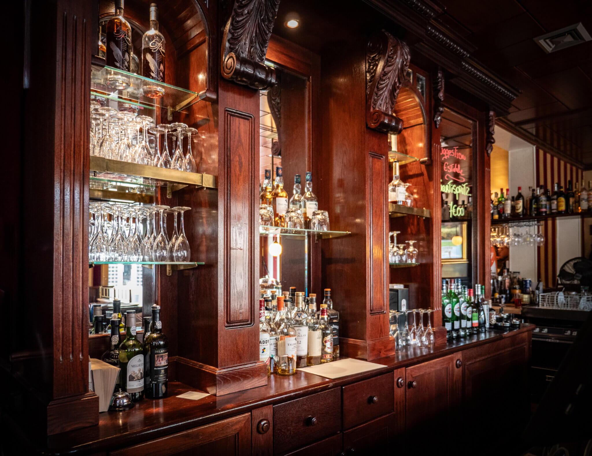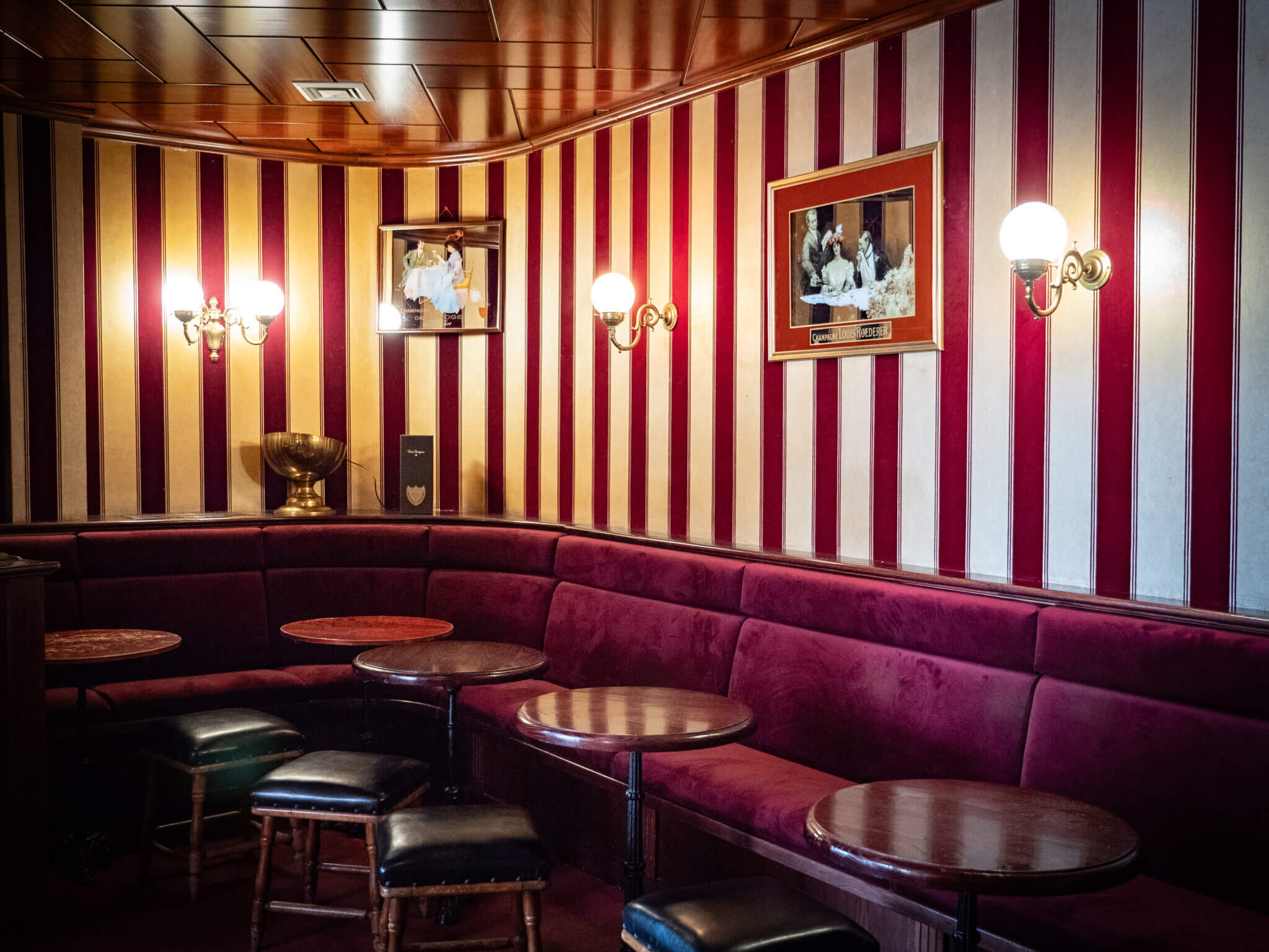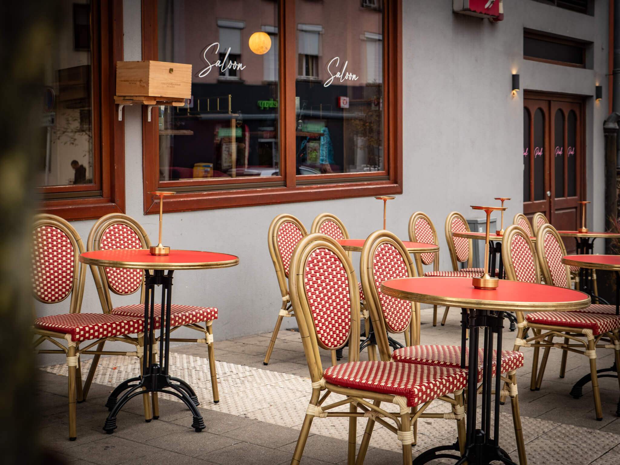 Il suffit de franchir la porte du Saloon pour se sentir immédiatement transporté. Non pas vers l’Ouest américain, malgré le nom, mais bien dans une brasserie chic et feutrée façon Paris. Banquettes en velours rouge, murs tapissés, lustres anciens, parquet massif, ambiance tamisée : tout ici respire le charme rétro, l’élégance tranquille et l’amour du détail.