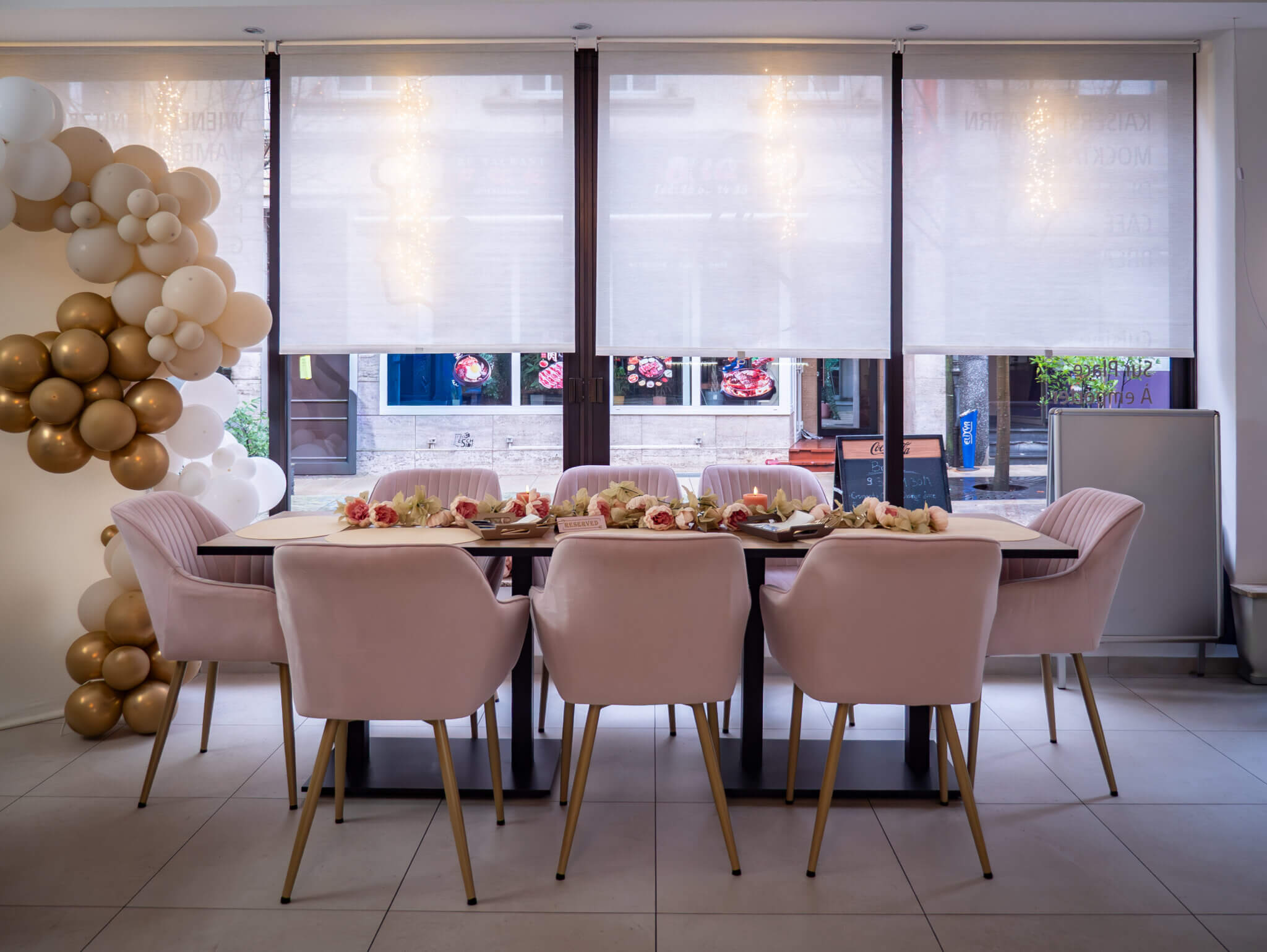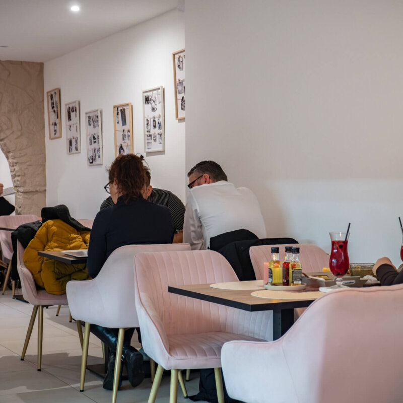 Och d’Ariichtung ass bis an de klengsten Detail duerchduecht: D’Armansa wollt eng waarm Ambiance schafen, déi gemittlech, modern an trotzdeem allgemengfrëndlech ass. Vill wäiss an hellrosa Pastelltéin, Velours-Still, Blummen, Holzelementer an déi passend Deko verleien dem Restaurant eng friddlech Ambiance, wou een direkt Loscht kritt, Zäit ze verbréngen.