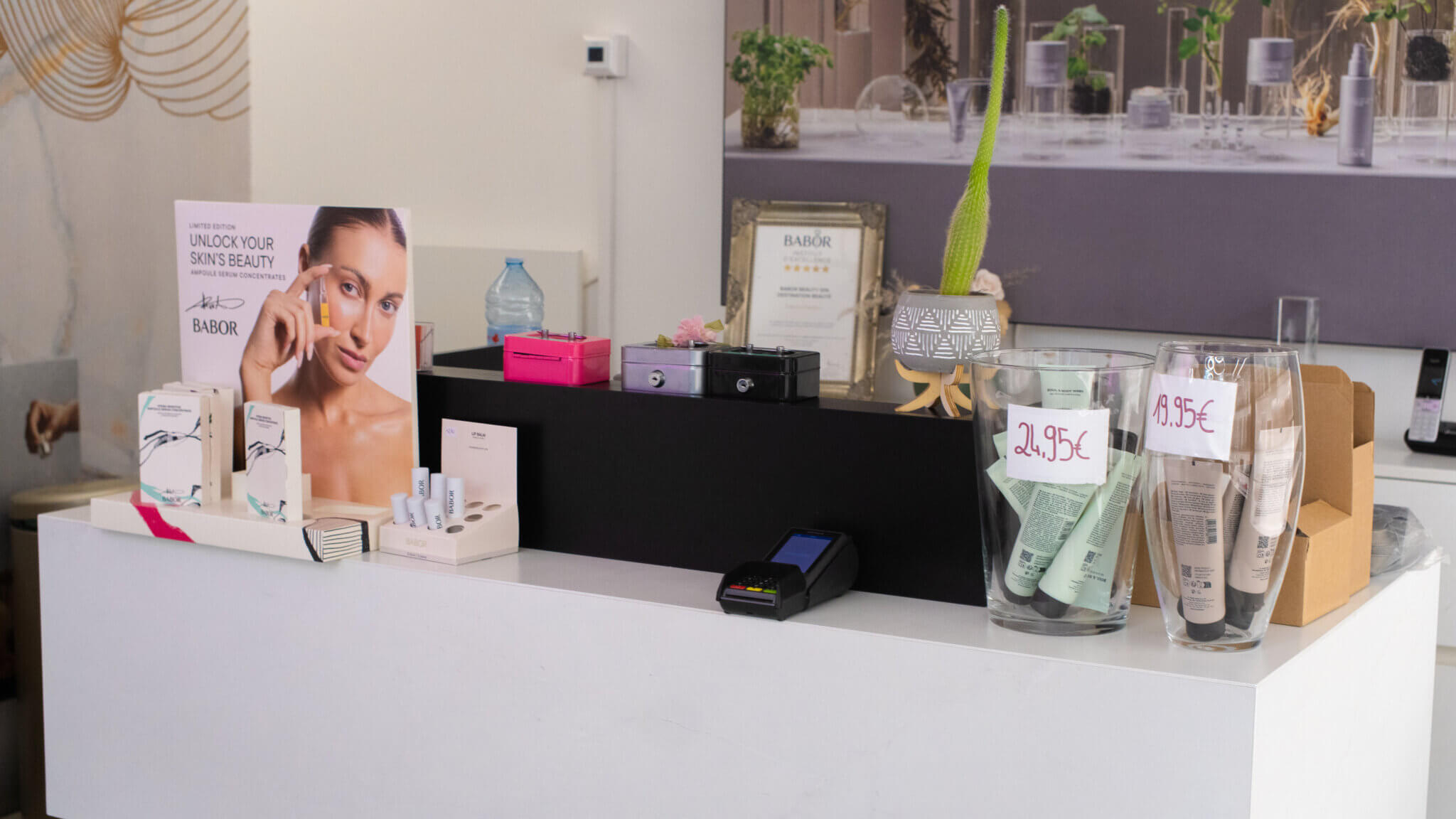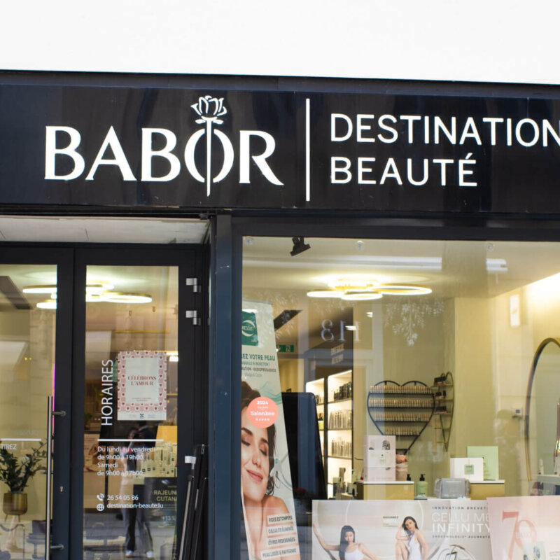 „Destination Beauté“ schafft haaptsächlech mat Produite vun der däitscher Mark “Babor”, déi bekannt ass fir hir héichwäerteg Qualitéit an hire nohaltegen Ëmgang mat der Ëmwelt.