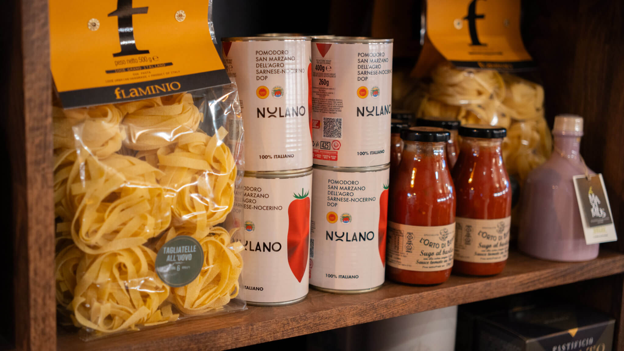Nieft de Wäiner bitt Drupi’s och eng kleng Auswiel un italieenesche Spezialitéiten: Pasta, Tomatenzooss, Olivenueleg an aner Produiten, déi d’Erfarung verlängeren.