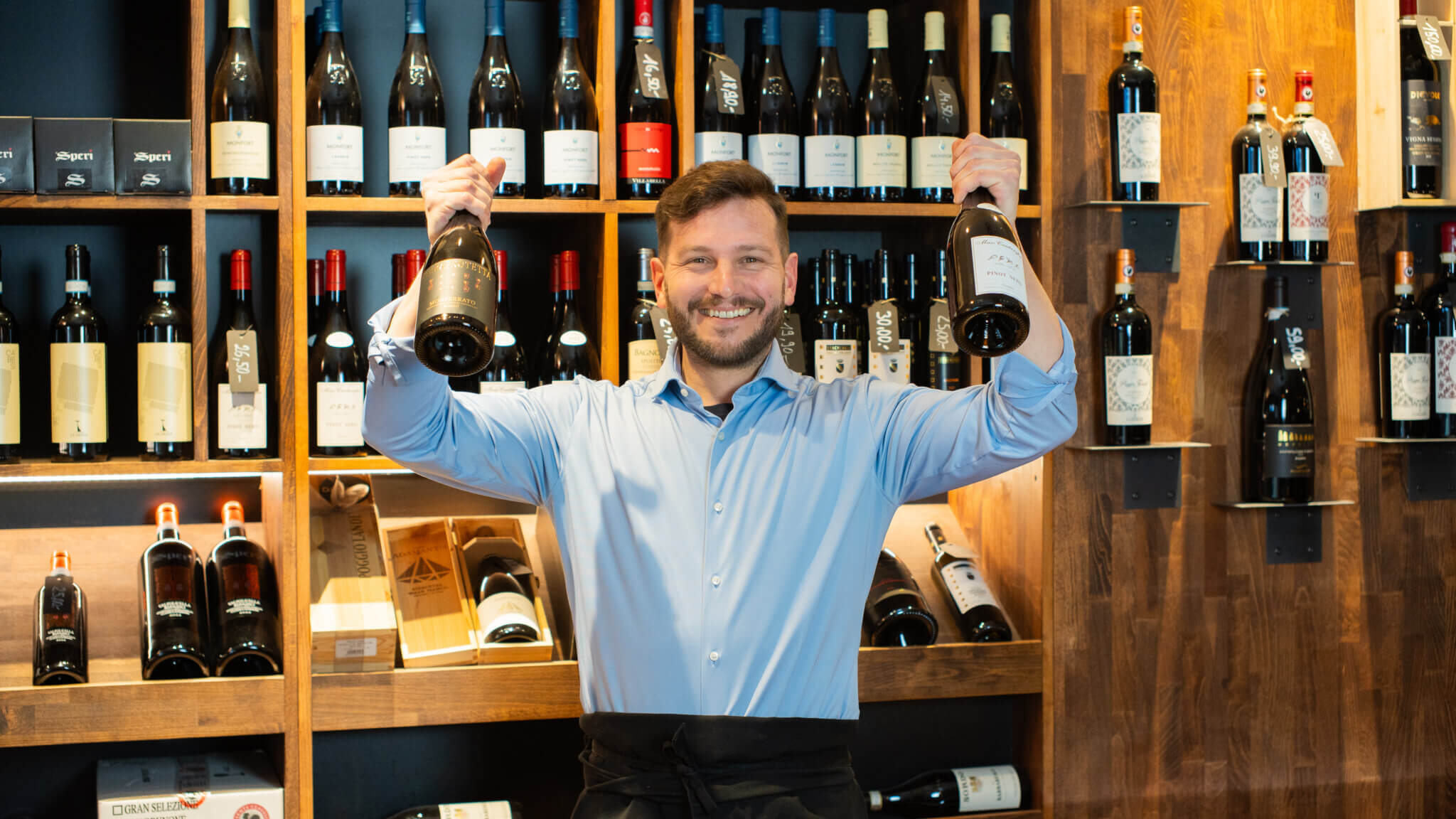 De Besëtzer, de Salvatore Pica, reest e puer Mol am Joer an Italien. Do sicht hien no neie Wäiner, besicht Wënzer a mécht seng Selektioun direkt op der Plaz.
